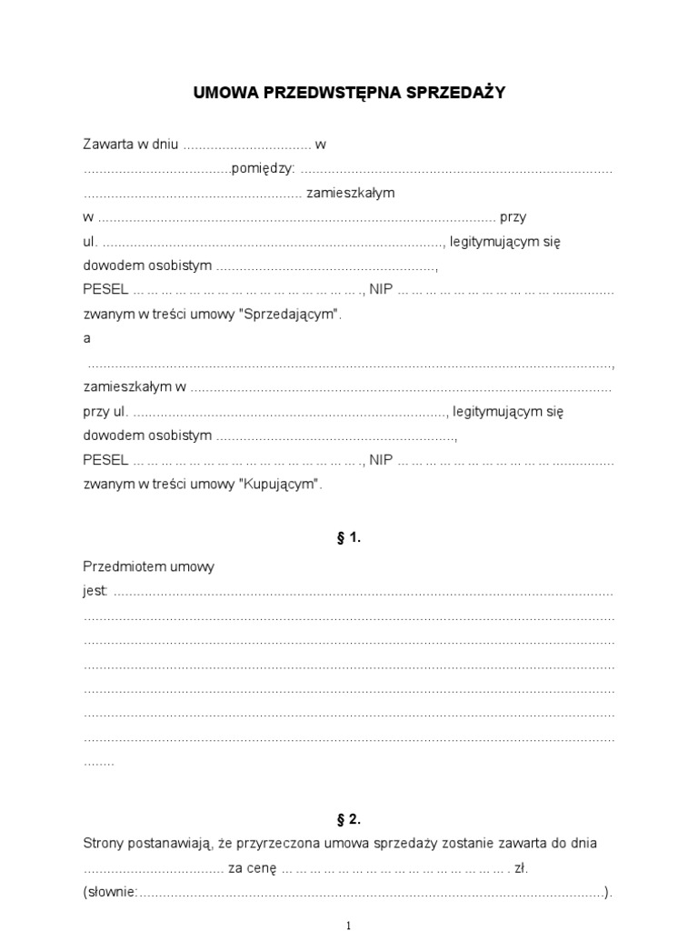 Title: Przedwstepna Umowa Kupna Sprzedazy
